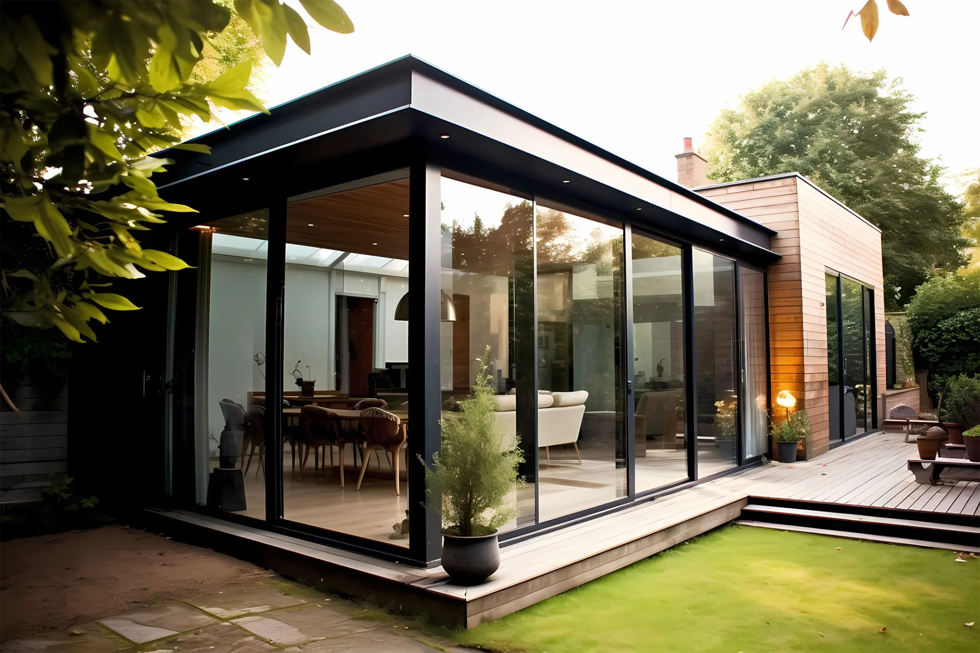 Chaque projet fait l’objet d’une étude approfondie afin de garantir une intégration harmonieuse et une performance optimale en matière d’isolation thermique et acoustique. Nos vérandas se déclinent avec toiture plate ou en pente, et proposent de nombreuses configurations adaptées à vos besoins spécifiques : jardin d'hiver, salon supplémentaire, espace détente ou bureau lumineux.